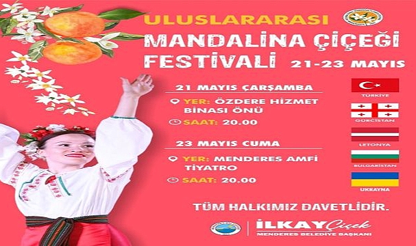 Menderes Belediyesi tarafından Mandalina Çiçeği Festivali 21-23 Mayıs tarihlerinde düzenlenecek. Festivalde 5 ülkeden onlarca kişi sahne alacak. Türkiye, Gürcistan, Bulgaristan, Ukrayna ve Letonya’dan halk dansları topluluklarının performanslarını sergileyecekleri festivalin ilk günü (21 Mayıs Çarşamba) saat 20:00’da Özdere Çukuraltı Meydanı’nda, ikinci günü (23 Mayıs Cuma) ise saat 20:00’da Menderes Belediyesi Amfi Tiyatro’da gerçekleşecek.